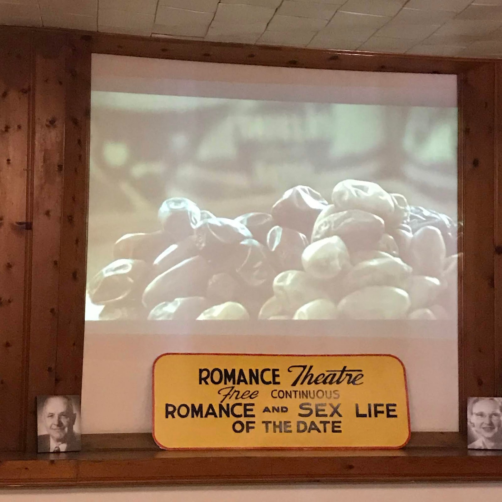 We started our visit with a date milkshake, a treat made with date crystals since 1936 according to their signs – they were delicious but it must have about a thousand calories. Next, we ventured into their theater to watch a movie from, I think, the 1950s It tells the story of Shields who worked to breed new varieties of dates, and the workers who take care of the trees from pollination to harvest in his palm grove. Disappointingly, it turns out that date palms are actually quite staid and need to be encouraged to get to know each other by the workers who must perch on long ladders as they hand pollinate the female flowers with pollen from the male trees. Definitely not an R-rated movie!