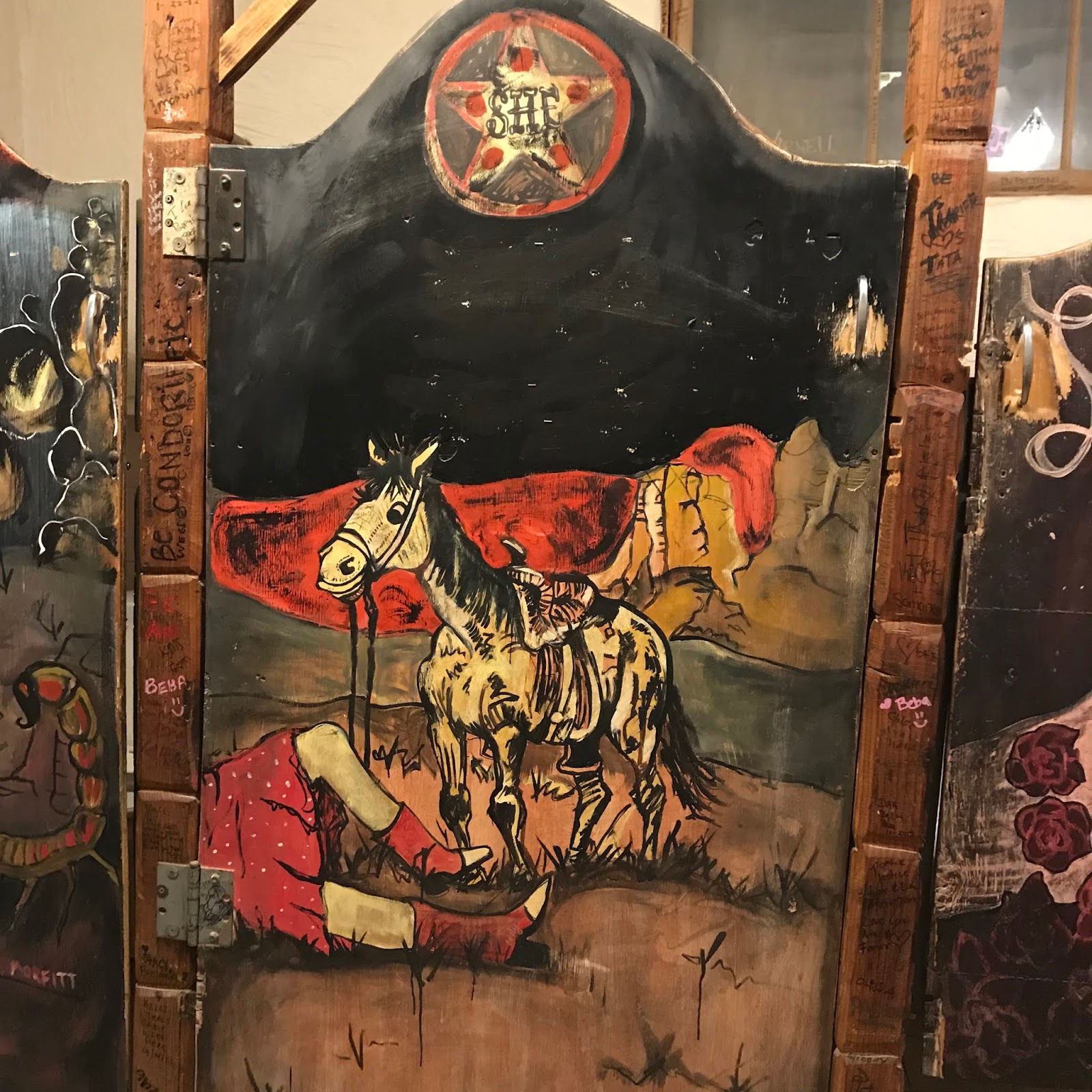 We headed out toward the town of Joshua Tree, one of the park’s entrances but instead of turning into the park, we made a detour for more “culture”not far from the town of Yucca Valley—an exploration of Pioneertown, purportedly founded by Roy Rogers and Gene Autry in the 1940s as a movie set for their shoot-em ups.