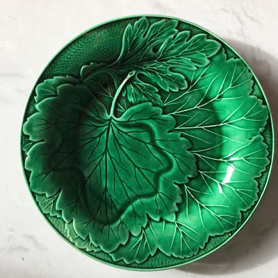 A shop called Bubble N Squeak (after the British dessert) lured me to browse antiques from the UK personally selected by the proprietor, Dawn Mohrbacher. Since it was early December, there were boxes of Scottish shortbread, plum puddings, and other traditional fare. (A hangover from Downton Abby someone said.) I didn’t resist the pudding and of course Christmas crackers with their prizes and silly hats. One table was loaded with green-glazed salad/dessert plates dated from about 1870 that were just the thing to highlight the pudding. Another shopping bag filled.