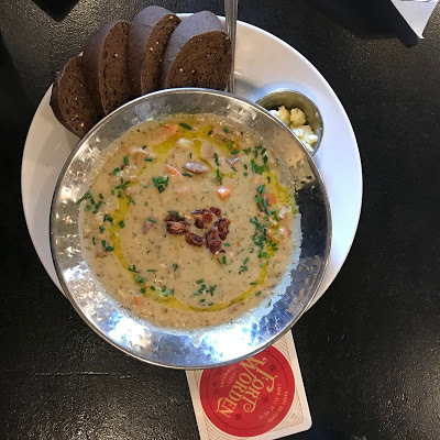 We enjoyed lunch at Taps where patrons are served in the old Fort Worden guard house. Fortunately, a fireplace and fully-stocked bar are part of the restaurant – amenities probably not available for earlier occupants. The razor clam and andouille chowder and Dungeness crab cakes were worth a stay in jail. We returned to the fort area for dinner at Reveille (is where breakfast is served to groups). Sorry to say it was lacking in ambience and very expensive.