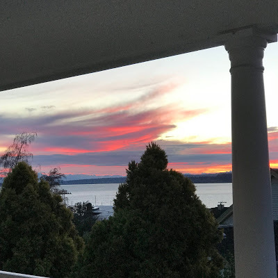 We woke to a glorious sunrise. It was time to head home with our vegetables, shopping bags, and relaxed attitudes. The ferry soon arrived and we slid past lazy cormorants resting on the Kingston dock pilings, no doubt waiting for a meal to swim by as we tried to decide how soon we’d return to Port Townsend.