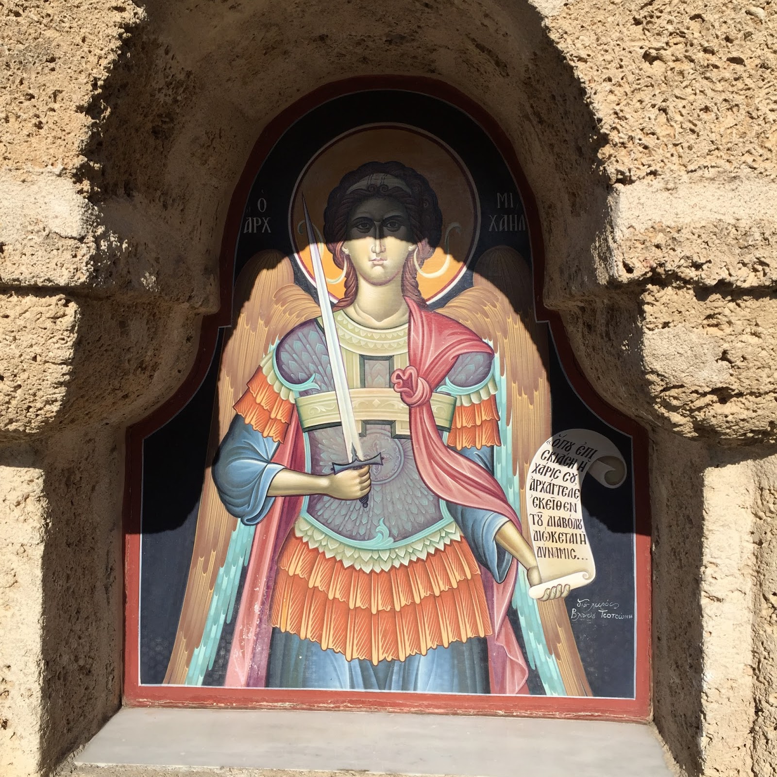 But religious sentiment was everywhere evident with dozens of tiny models of Orthodox churches, often painted the blue and white colors of Greece, placed near dangerous roadway curves where some unfortunate motorist met with disaster, or perhaps was saved from death by a miracle. We stopped for a coffee at a roadside stop where I slipped into a nearby chapel built for travelers who paused for a prayer before continuing their journeys. I lit a tall beeswax taper to join others casting glowing light on the icons painted in rich gold, red and blue.