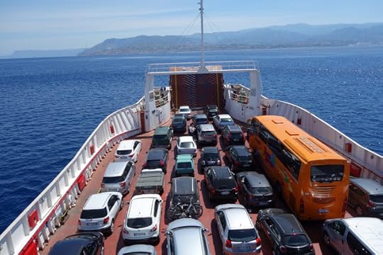 We arrived in Sicily deep in the bowels of the large ferry that transports the train from the mainland to the island. Now we returned for a day of sightseeing, this time on one of the many car ferries that cross the straits from Messina back to the port near Reggio Calabria.