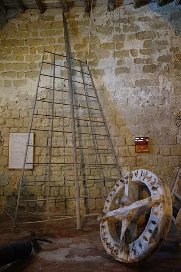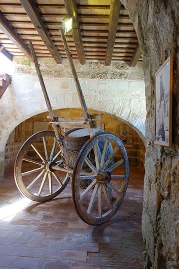 Between courses we looked at the salt-encrusted wood Archimedes screws to pump water, a frame for a windmill sail, and the rakes and wagons, and wondered how the workers survived such labor in the burning sun while here we were relaxing with food and wine without a care.