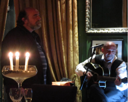 After a short wait, a crisply-attired maître d’ ushered me into a long narrow room filled with an ambience of quiet elegance. The dining room glowed with candle lit tables swathed in white linen with crystal chandeliers hanging in delicate balance above. The maître d’ seated me a couple of tables back from the stage with a perfect view of the musician.