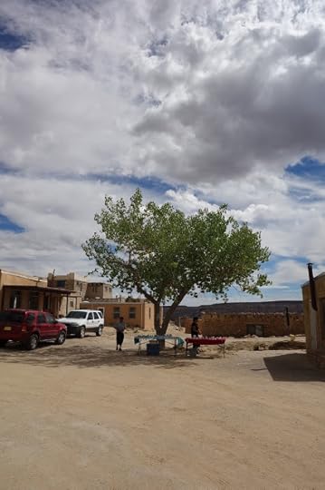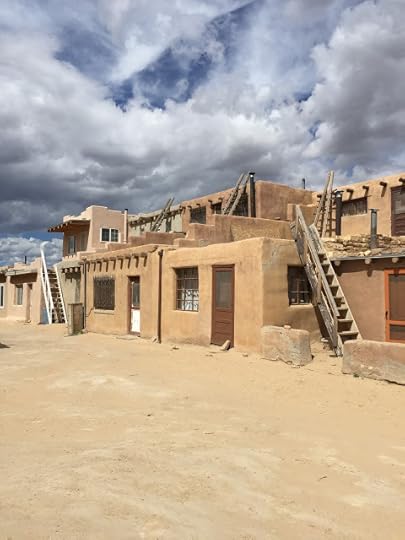 A few doors were painted to brighten the scene but the ground and the adobe buildings are all the same color, a warm tan color, making the pueblo appear as though it sprung from the earth centuries ago. A few of the homes still had the old-fashioned windows made of mica which the Spanish may have mistaken for gold when they sparkled in the sunlight.