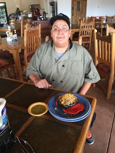 On the return trip back to Albuquerque, we took a detour to check out a white church on top of a hill at the Laguna Pueblo. The church, Mission San Jose de la Laguna, was built in 1699. As we were standing by the open front door I saw a man running toward us. Unsure if we might be trespassing, we stopped to wait. Out of breath and dripping with sweat, the man introduced himself as Arnold. He lived nearby and was a caretaker. He told us the story of the church, including some of the miracles that had happened there while empathizing that none happened at Acoma. To illustrate the continued blessing of happy events, he said his mother had recently been granted a house nearby on the reservation after many years of waiting.