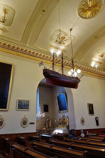 Discarding the idea, we warmed up in the lovely small church of Our Lady of the Victories, named after the French who resisted two British sieges, one in 1690 and the other in 1711. The ship model hanging in the nave is the Breze, a 17thcentury vessel that brought French troops to Quebec.