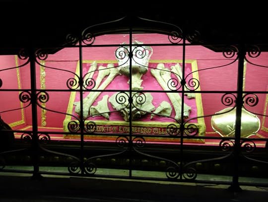 Below is a reliquary with many of the saint’s bones. I always wonder how the bones so frequently displayed in churches were obtained, and if they really belong to the person venerated.