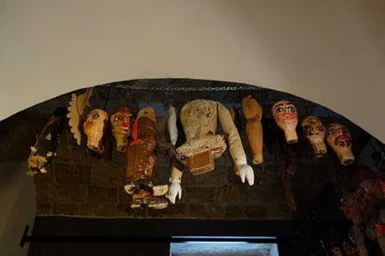 In the evening it was time for a change from the sacred to the profane – a traditional puppet show with knights, Moors, and our heroine, Angelica. The theater had a small museum and a workshop where disembodied heads and other body parts hung from the ceiling.