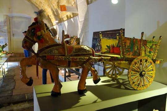 Rather disconcerting until we saw the amusing puppet of a horse pulling a traditional Sicilian cart – the horse has both right legs off the ground, quite a balancing trick.