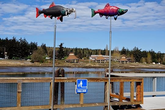 When it was lunch time, we chose the Nell Thorn Restaurant and Pub to sit by the water watching sailboats head out for an afternoon’s pleasure and an eagle circling lazily overhead. Across the channel, are three structures in the shape of Swinomish Indian hats used to welcome the paddlers of more than a hundred canoes from coastal tribes who gather every July to rest, share songs and tales of their journey across the sometimes treacherous waters.