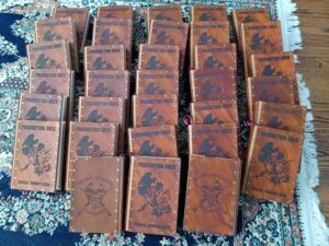 Turns out one orc has enough hide for thirty-five book cases. Out of decency, I’m keeping the one with the unfortunately placed nipples. Alan at Studio 42 Designs has the prototype. He’s signed each case, and I will sign the title pages.