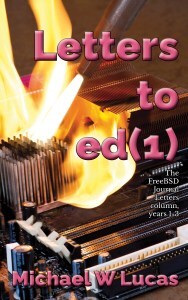 It’s release day! Letters to ed(1): The FreeBSD Journal Letters Column, years 1-3, is now available in ebook and paperback everywhere. Amazon hasn’t hooked the paperback and ebook together, nor have they connected the book to my bibliography, but it really is available.