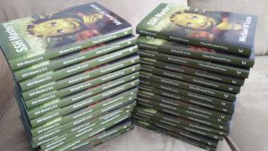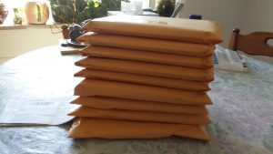 Note the little stack of customs forms off to the side. It’s like I’ve learned a lesson from standing at the post office counter filling out those stupid forms. Sponsors should get their books soon.