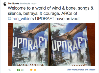 While I’mposting various selfies with UpdraftARCs over on Instagram (who am I kidding, selfies will likely go everywhere) this month, here are two chances to win a copy for yourself and read Updraft before everyone else. Then you can post your ownUpdraft ARC selfie (&tag me!).