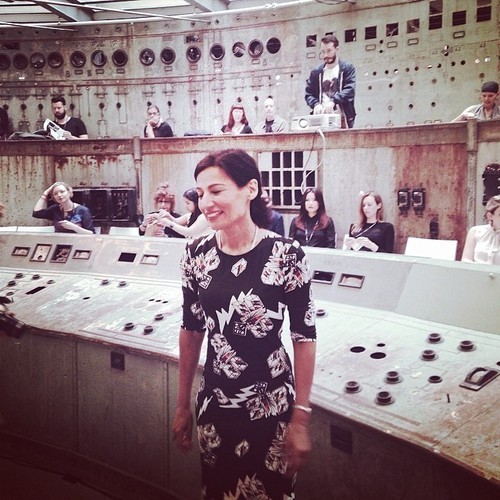 Old electric power plant converted to space rocket style conference room - up up & away in my beautiful Zandra RhodesXPT dress