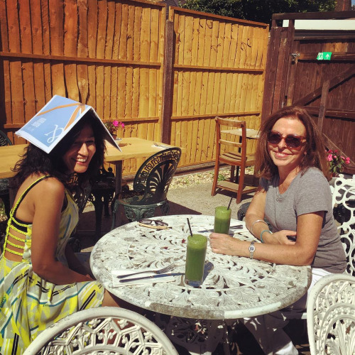 Sunny lunch with Wendy -half Indian but I still need to protect myself. Too many freckles !