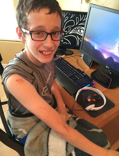 Look close. See beyond the subject's obviously forced, cheery nature. Pain must throb and wholly own the conscious center some might call his sense of self or current awareness. The poor waif has no ability to reason or remember, only to feel. He is consumed by the horrific injuries you see in the image I have so indelicately uploaded. And how has the boy come to this sad state of writhing agony?