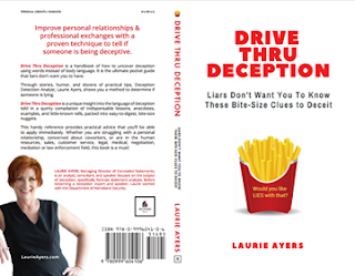 Tell us about how you earned your spot in the Major Leagues: There are very few people who do what I do, analyze written and verbal statements for deception using a method called forensic statement analysis, which is the most accurate method to determine credibility. Some of my credentials include certification in Statement Analysis® Interviewing Techniques and I am a certified delegate of the Paul Ekman Institute in Evaluating Truth and Credibility, Emotional Skills and Competencies and Train the Trainer. I wrote Drive-Thru Deception to give all readers a sampling of my extensive deception detection training in quick, practical tips that they could implement in their personal and professional lives.