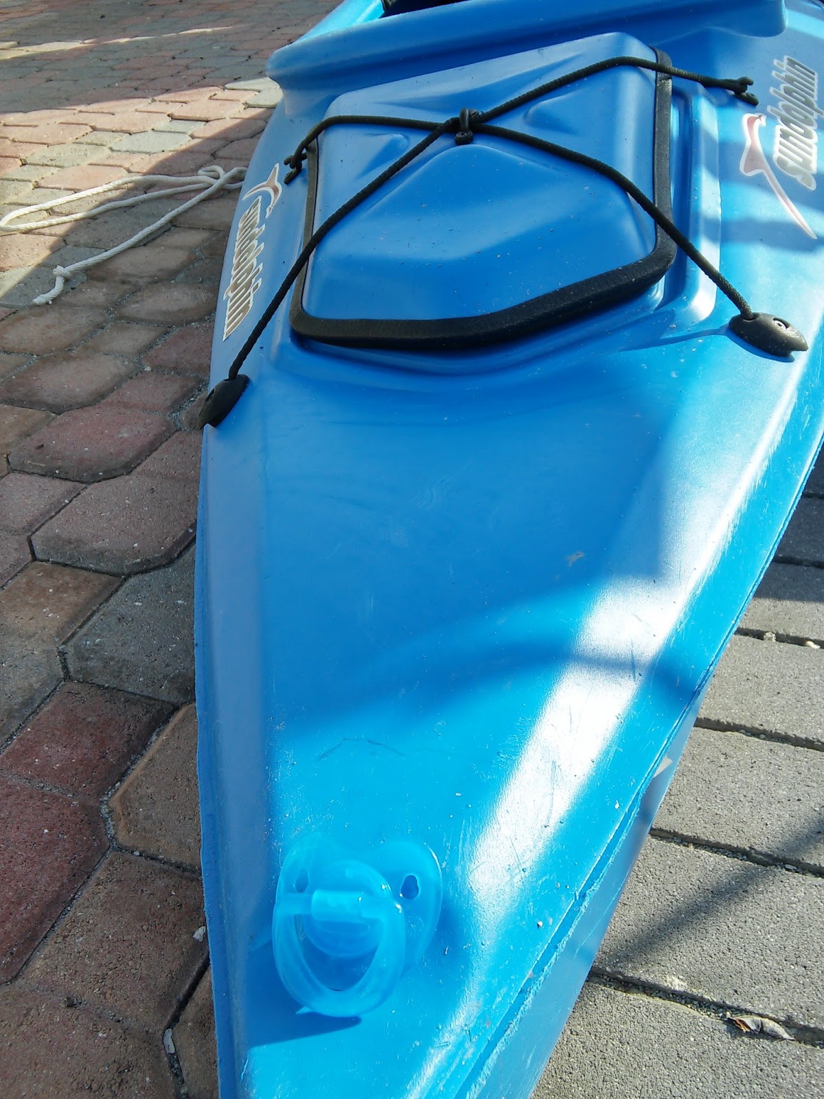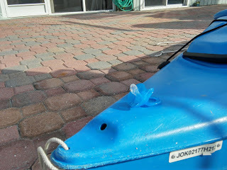 "Improvise," said the man at the kayak store. It was the third stop in a fruitless afternoon of seeking a replacement part. The day before I had taken out my kayak on the first adventure of this year's winter in the Keys. When I returned I discovered the black rubber stopper in the drainage hole was practically rotted through.I bought the cheap kayak seven years ago at Kmart, but I discovered they don't have replacement parts. My second stop was Home Depot which stocks a wide variety of black rubber stoppers, but the ones with a handle to pull the stopper out were too large. That was the same problem with the replacement parts for the better quality boats at the kayak store.