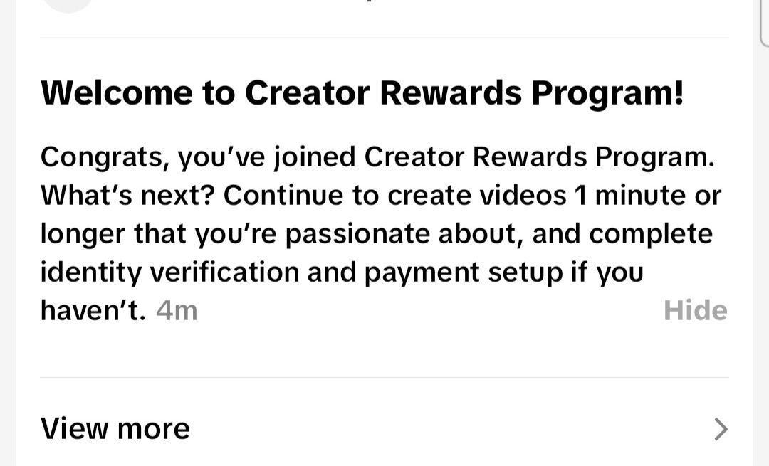 I got the best news ever Sunday I got accepted in the Tiktok Creator rewards program, which is exciting since it means I can get paid for videos over a minute long.