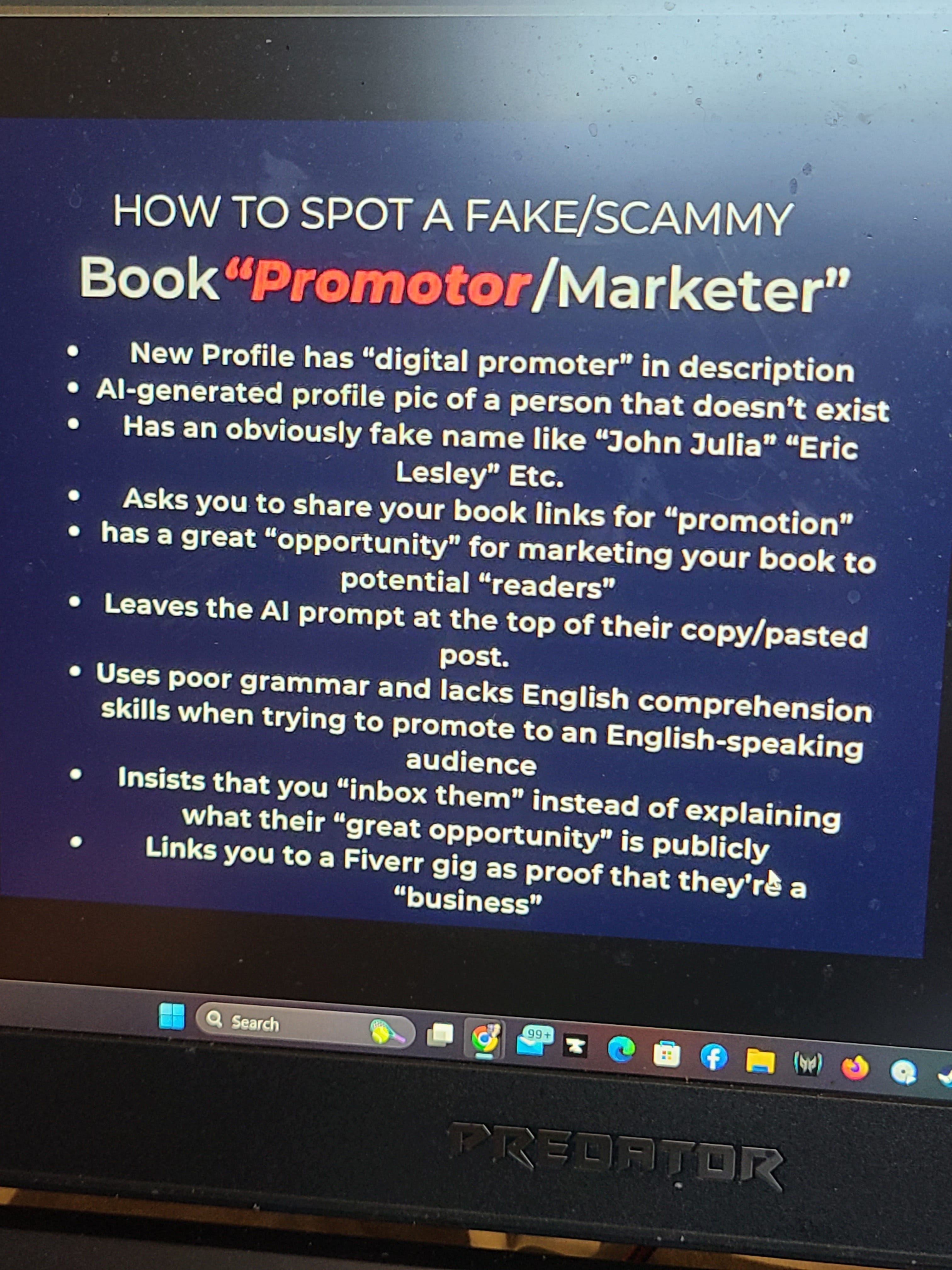 Also with plenty of free ways you don’t need them. I’ve been publishing for 14 years 23 books to my name I don’t need help from people who can’t even do their jobs right. There are pics below for you to see the signs they are a scammer.