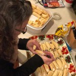 Sunday night before the Christmas program I filled the cannolis with the filling. Yes, it takes two days to make cannolis, the filling and putting it all together. But when you see people smile as they take that first heavenly bite of that delicious cannoli while they sigh in contentment you know it was all worth it.