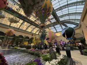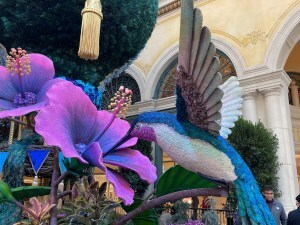 Two months ago in March, I had the chance to see some vibrant beautiful flowers in a colorful array. There were blue, pink, yellow, and white flowers. There were some flowers that had two or three colors together. These beautiful flowers were at the Bellagio Conservatory and Botanical Garden. Yes, this beautiful garden was in a casino. It was one of the most beautiful gardens I’ve ever seen, and there were more than just flowers in this conservatory. There were hot air balloons that had flowers in them and flower petals on them. There was a beautiful peacock made of flowers and more!