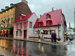 We did a lot of walking while we were in Quebec, in the rain. We found a sandwich shop that had croissants and espresso. We liked that place so much we went there two mornings in a row. We ate an authentic Canadian dinner at a restaurant that was down the block and across the street from our hotel. That was a seriously nice restaurant which is the oldest house in Quebec City. We found a crepe place that made good crepes and, yes, they had really good espresso too. We even found a gourmet popcorn place that had, yes very tasty popcorn.