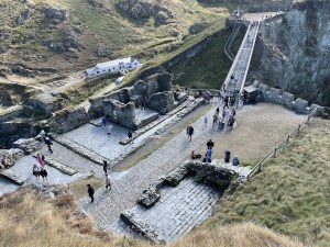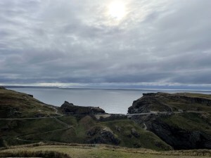 Here comes the fun part! Last week while I was on vacation, my husband and I did spend 2 days in Cornwall. We stayed in a hotel called Camelot and the view from my room’s window was King Arthur’s Castle aka Tintagel Castle. It was truly a stunning view! The castle ruin with the Ocean behind it. It was breathtaking. We got to see firsthand King Arthur’s Castle ruin along with what is left of the wall and a bunch of nearby ruins that the man showed in the documentary. I was truly excited to see it all for myself and naturally, I had to touch the wall. I even got a picture with the statue of King Arthur! It was so cool!