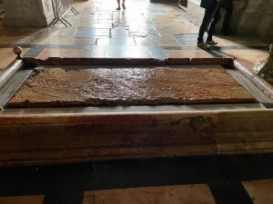 For 2 months I have been struggling with the right words for this blog about the Holy Sepulcher. And now I hope it doesn’t take me 2 weeks to write it. I have finally decided to start with my positive thoughts about this place and then the negative ones. Are you ready? Let’s go! Okay, so back in November at Thanksgiving my husband and I took our first trip to Israel. We were both super excited. We had a list of places we wanted to visit and the Holy Sepulcher was one of them. The morning we decided to go we made sure to get there as early as possible. When we got there the first thing we looked at was the marble slab that they say was where Jesus’s body was put in preparation for His tomb. It was decorative and definitely worth looking at.