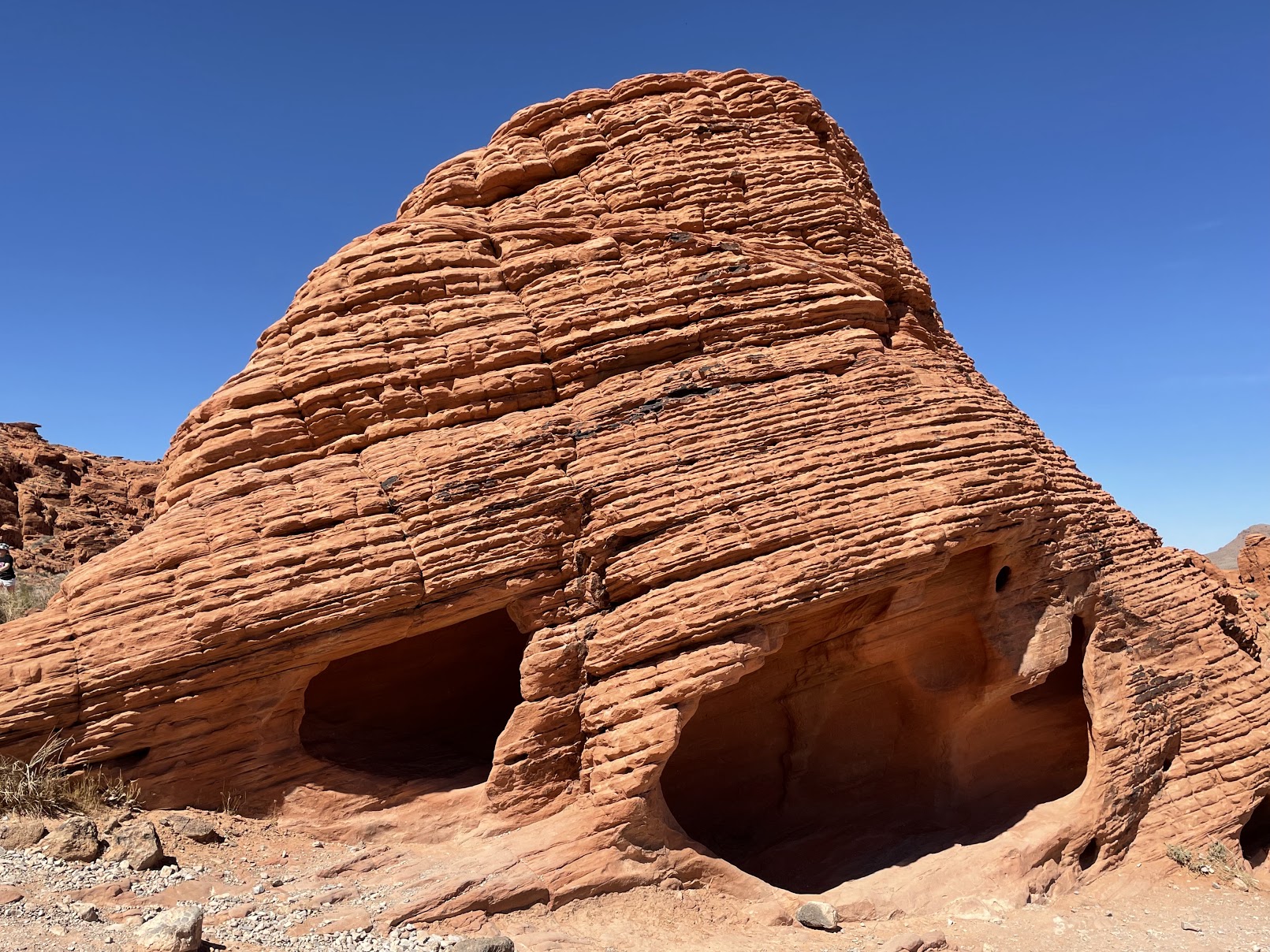 For me, it was incredible to see and walk around this Valley of Fire. Seeing nature in the form of a red holed rock that looked like it was on fire was a true amazement for me. By the way, this place is often closed in the summer due to the extreme heat. There are also 3 brick homes in the Valley of Fire that were built in the early 1900s for people who liked to camp there. No one has stayed in these places for years, but it was cool to walk in each one and see what they look like.
