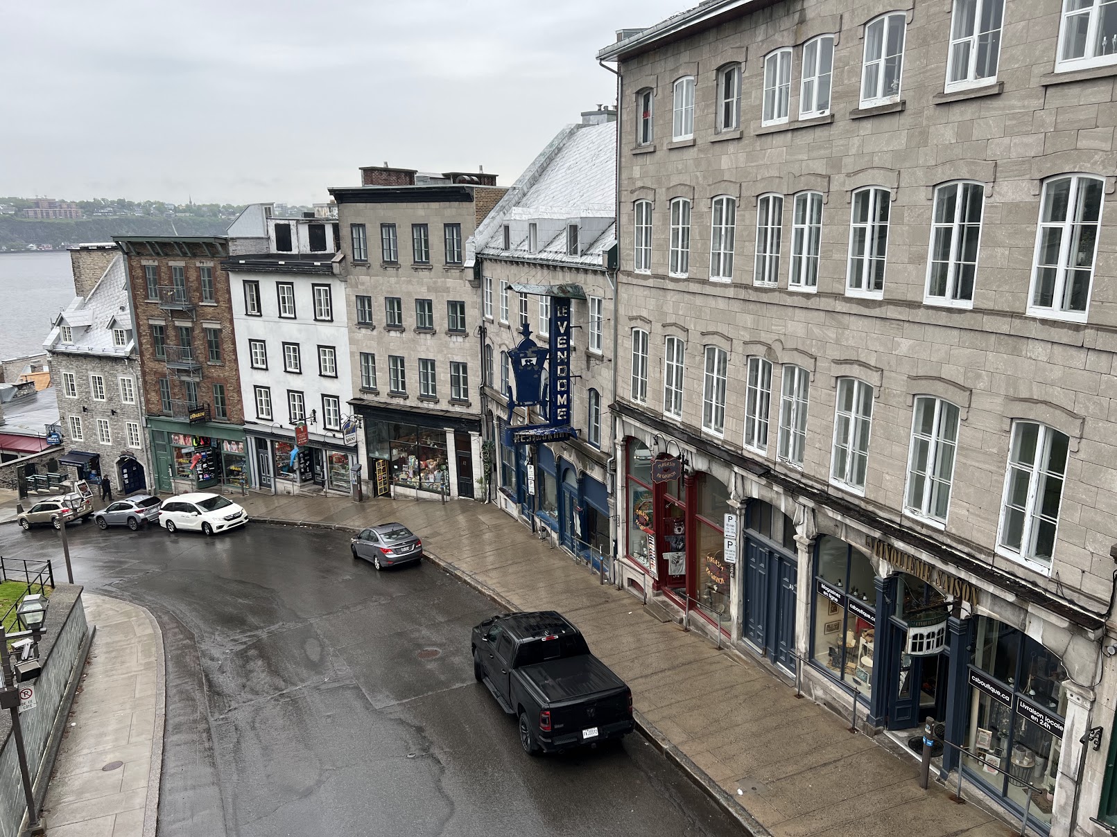 Unfortunately for us, it rained just about the entire time we were in Quebec. I don’t mean a bit of rain here and there. That wouldn’t have been a big deal. We would have worn our rain jackets and our hoods. No, when I say it rained I mean it rained all day to the point that we used our jackets and our umbrella. Good thing we had one! Just so you know I’m not complaining about the rain, I’m simply letting you know that it put a slight damper on things. Overall we did have a good time in Quebec and we found some cute stores and had delicious food and wonderful espresso.