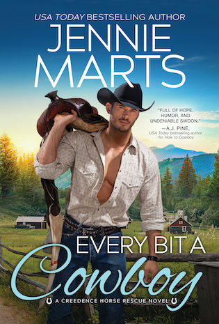 Every Bit a Cowboy(Creedence Horse Rescue, #5)Author: Jennie MartsPublication Date: March 7th, 2023Genre: Adult Contemporary RomanceBook Description:“Filled with humor, heart and real love.” —Michelle Major, USA Today bestselling author