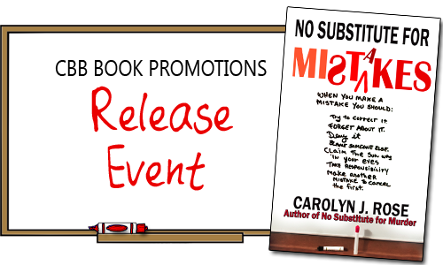 I’m excited to welcome you to the release event for No Substitute for Mistakes by Carolyn J. Rose. This is the fifth book in the Subbing isn’t for Sissies series and is now available for sale! This is a cozy mystery series and the first three books are only .99 cents!