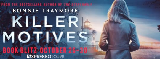 Killer MotivesAuthor: Bonnie TraymorePublication Date: April 14th, 2022Genre: Adult Mystery / SuspenseBook Description:“A riveting, pulse-pounding, adrenaline rush of a thriller. Do not miss this book!” – Noelle W. Ihli, author of Gray After Dark