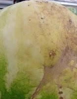Last, but still important. The Tail: Indicates its ripeness. Green tail means it was picked too soon – not good. A dried tail means the best tasting watermelon.