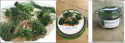 Okay, back to my herbs. I cut and dried several herbs, combined a mixture and put them in an air tight jar. Then I labeled the jar and gave it to my husband who does a lot of grilling and smoking.
