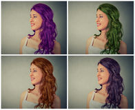 Black-haired people use to be considered exotic, gothic, slutty, and sexy. What about the trendy colors? What does that say about your heroine? Blue, purple, pink??