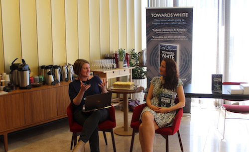 I’m still taking it all in, but on Thursday night Towards White was launched by the amazing Joanne Anderton in Sydney. The biggest battle was getting my 12 year old son to wear jeans, not shorts, but after that everything went really well. The bookshop, Harry Hartog in Warringah Mall, set up a beautiful seated area and a couple of high stools for Jo and I, as well as a fabulous autograph table.