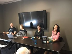 The panel and I talked about the difficulties of writing cross-genre stories – mostly trying to sell them to publishers. Stickers and stocktaking were the problem. Libraries put a single sticker on each book’s spine so they can be shelved and easily found. Bookshops need a single category for stock-taking purposes. For this reason, publishers tend to play it safe with books that clearly ‘fit in a box’. Exceptions seem to be when a publisher wants to expand their list to offer readers something different. No one on the panel, however, wrote cross-genre intentionally, prioritising the telling of a certain story or character above that story’s eventual classification. So while it can help writers to consider the primary genre of their story and ensure they meet readers’ expectations for that genre, such forethought rarely happens in practice. Luckily online book retailers, and even some publishers, now recommend other books in ‘people also read’ sections, which can help readers find cross-genre stories they might not find solely searching by category. A final thought from the panel was that really cross-genre referred to ‘original’ stories, stories that don’t fit existing molds and push the boundaries of fiction. Without authors doing this, new genres of literature (such as YA) wouldn’t exist. The world of literature needs us!