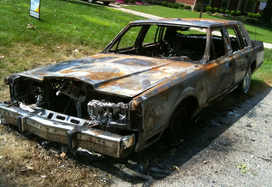 Same thing with this one. The storm that bent a billboard backwards made this old car explode in flames and raining pieces in my neighborhood. SO AWESOME.