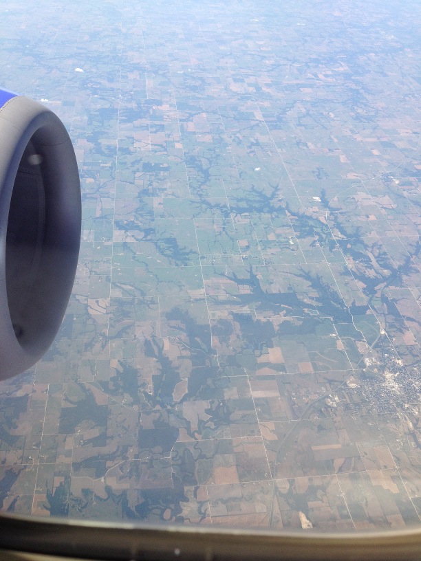 I spent most of the day on the plane, but even there, I got pictures! You see, the Midwest is so boring it's freaky fascinating. Imagine miles and miles and miles of flatness reaching to every horizon, divided mysteriously into squares. Oh, wait, you don't have to imagine it. I took a photo.