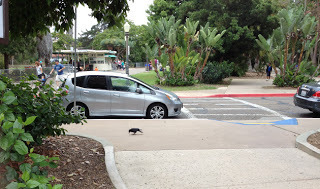This photo was taken at Dana's request. Look carefully. We're in San Diego. What do you not see?