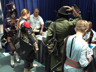 No more boring on-the-way-to-the-con stuff you don't care about. I declared Friday to be Cosplay Photographing Day! I knew it would be when I walked in the door right next to the weapons check booth. Luck was with me, and Mad Moxxi was checking one of her custom SMGs.