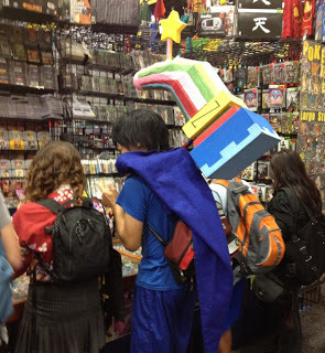 Here is something you need to understand about San Diego Comic Con. I only photographed the costumes that whim struck me as amusing, because costumes are everywhere. I took this next photo when I realized that I could take a photo in any direction and there would be a cosplayer. That's also why the image quality is so bad. I pulled out my camera and snapped a random photo.