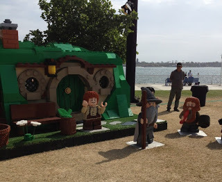 And then everything went to Suck. We tried to go to a panel, and the line was... it's hard to be sure. Half a mile would not be an outrageous claim. I couldn't photograph it because it twisted around so many corners there'd be no point. Instead we took the long route back to our hotel, and stumbled over a little playground with this silly Lego Hobbit display.