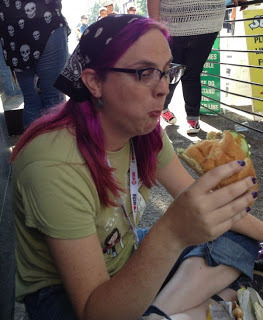 LUUUUUNCH! I think we got a hamburger. No, that was the day at the pizza and beer place. Not important! What is important is that SDCC spreads out around the convention center itself, and we got more photos!