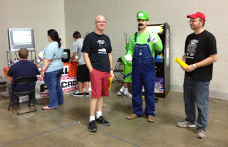This was the first thing I saw when I walked into the dealer's room. I'm not sure what he's selling, but he's part of the display. Did Mario shaft you on the royalty contracts THAT badly, Luigi?